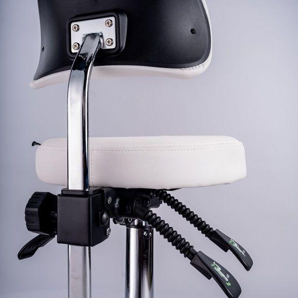 The ultimate salon chair features a circular seat with an ergonomically designed backrest for optimal support and comfort. It includes gas lift mechanisms for easy height and incline adjustments, ensuring a customized fit. Made with high-quality padding, this chair is perfect for extended periods of sitting, providing both durability and comfort.